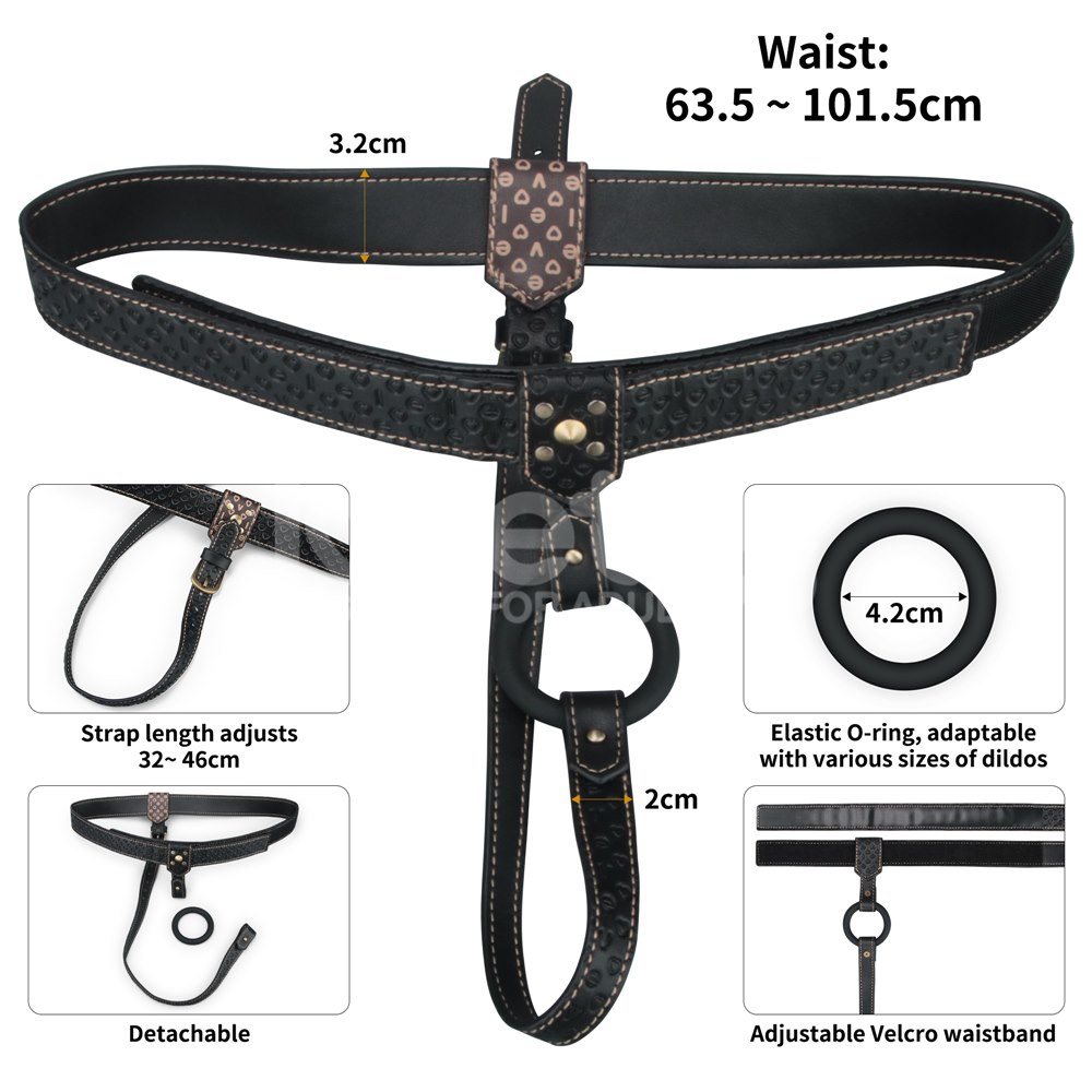 Uprząż współpracuje z wymiennym, elastycznym silikonowym O-ringiem, dopasowując się do różnych rozmiarów dildo. Regulowany pas biodrowy i pasek bazowy stabilizują akcesorium, dzięki czemu ruchy są precyzyjne, a stymulacja przewidywalna. To narzędzie do budowania napięcia, konsekwentnej kontroli i jasnych ról.